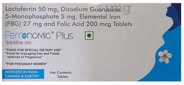 Ferronemia Plus Tablet is a nutraceutical supplement for special dietary use, formulated to help support iron intake in adults with iron-deficient diets. Each tablet contains Ferrous Bisglycinate (FBG), Lactoferrin, and Disodium Guanosine 5-Monophosphate, blended with permitted food-grade excipients. Ferrous Bisglycinate provides a bioavailable source of iron that can help meet daily nutritional needs. Lactoferrin is a multi-functional protein that may help support immune wellness.