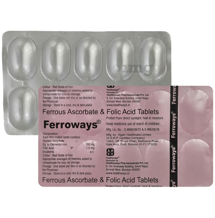 Ferroways Tablet is a health supplement that provides nutrients related to folic acid and iron. It can help increase red blood cells and folate levels in the body. It may also aid in oxygen transportation and haemoglobin formation for increased energy and metabolism.