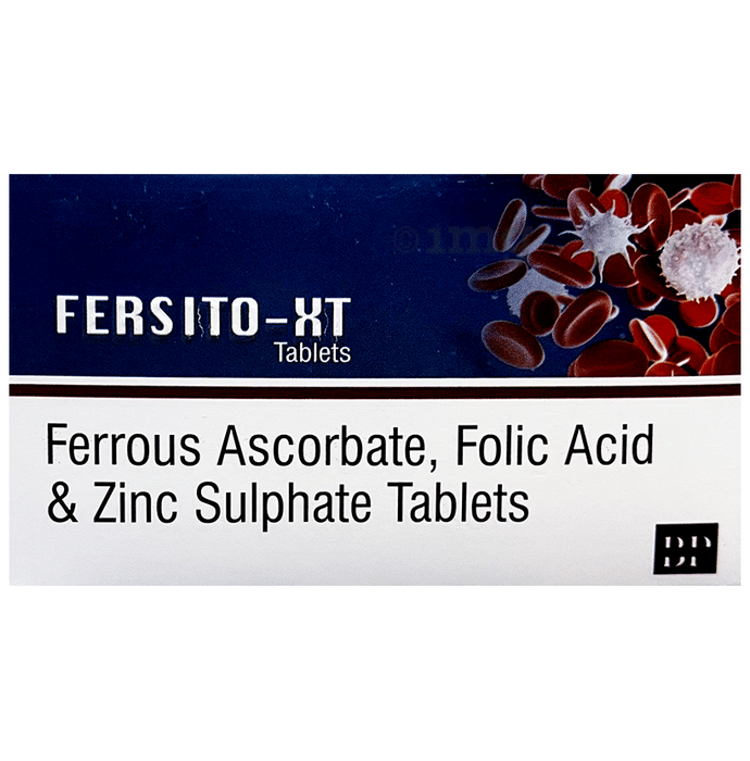 Fersito-XT Tablet is designed to provide essential nutrients like iron, folic acid, and zinc, supporting overall health and well-being. These tablets help maintain optimal levels of these vital nutrients, promoting healthy red blood cell formation and immune function. The combination of ferrous ascorbate, folic acid, and zinc sulphate monohydrate supports various physiological processes, including cellular function and growth. Fersito-XT Tablets are especially beneficial for individuals with increased nutritional needs or deficiencies.