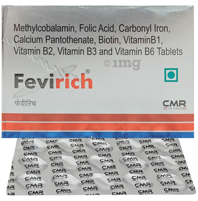 Fevirich Tablet is a nutritional supplement containing elemental iron, minerals, and cyanocobalamin as active ingredients to support nutrition.