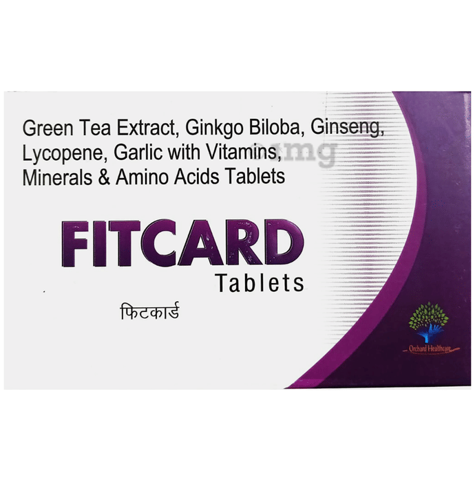 Fitcard Tablet is a comprehensive dietary supplement formulated with a combination of natural extracts, essential vitamins, minerals, and amino acids. This advanced blend includes ingredients like green tea extract, ginseng, ginkgo biloba, lycopene, garlic, and a balanced profile of nutrients designed to support overall wellbeing. With a detailed spectrum of components, each film-coated tablet is formulated to align with daily nutritional needs and can be incorporated into wellness routines under expert guidance. The formulation may support nutritional balance for energy metabolism, cellular function, antioxidant needs, and amino acid replenishment in the body.