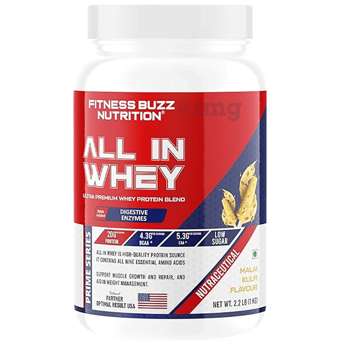 Fitness Buzz Nutrition All in Whey Prime Series with Added Digestive Enzymes Powder Malai kulfi