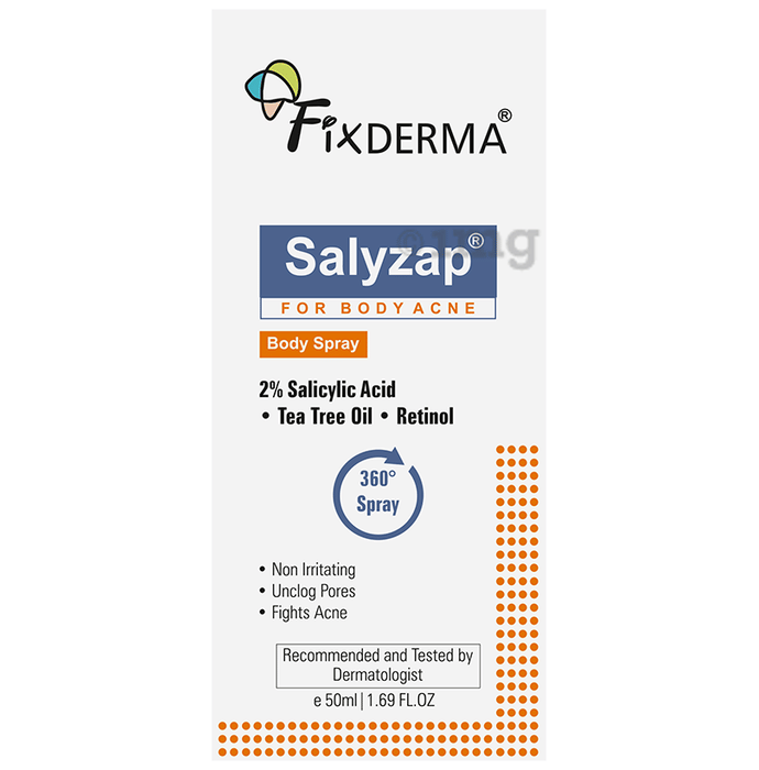 Information about Fixderma Salyzap 2% Salicylic Acid Body Spray | Anti Acne Body Spray Fights with Acne & Unclogs Pores