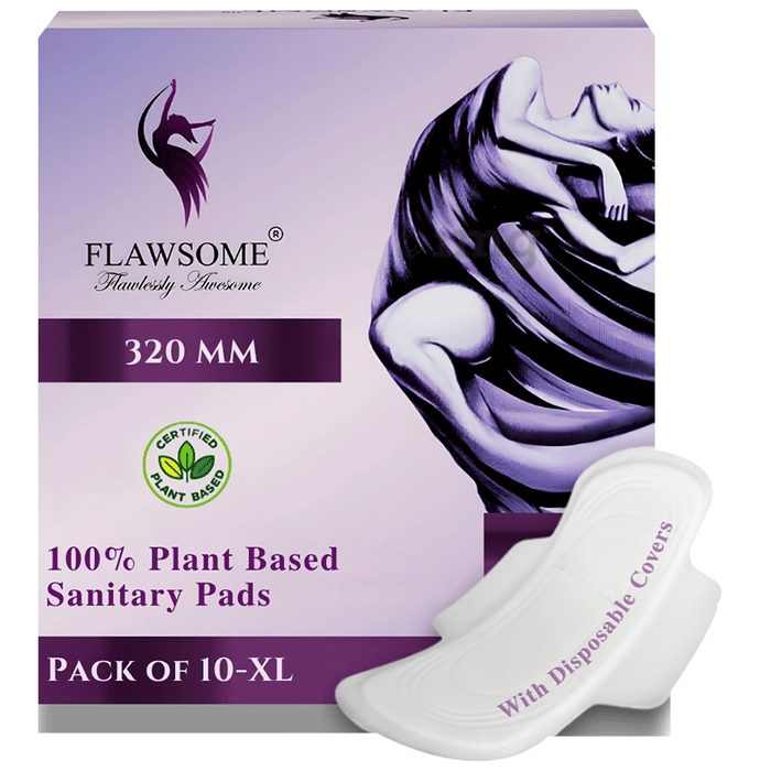 Information about Flawsome Plant Based Sanitary Pad | Breathable, Soft Touch, Heavy Flow Support Pads XL Rash Free