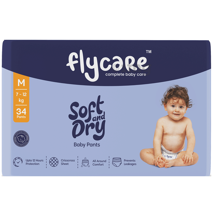 Flycare Soft and Dry Baby Pants may help parents on the go as it can assist in quick changes without the need for a changing table. The soft, breathable material may help ensure the baby stays comfortable throughout the day and night. With strong leak protection, it can assist in keeping the baby dry and managing accidents. The hypoallergenic and breathable materials may help maintain the baby’s skin health and can assist in managing the risk of diaper rash. The diapers are designed to allow air circulation, which may help manage the risk of rashes and keep the baby’s skin dry. Supported with ADL (Acquisition Distribution Layer) Technology for quick absorption and even fluid distribution that may help keep the skin dry and comfortable by minimizing wetness.