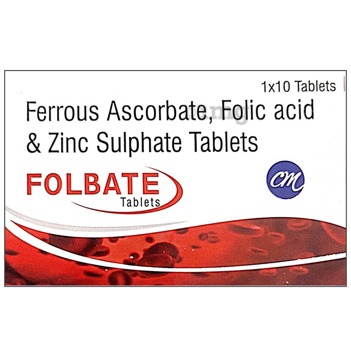 Folbate Tablet Folbate Tablet is a health supplement formulated with folic acid that helps prevent iron and folate deficiency. Key Ingredients: Ferrous ascorbate,Folic acid,Zinc sulphate Key Benefits: