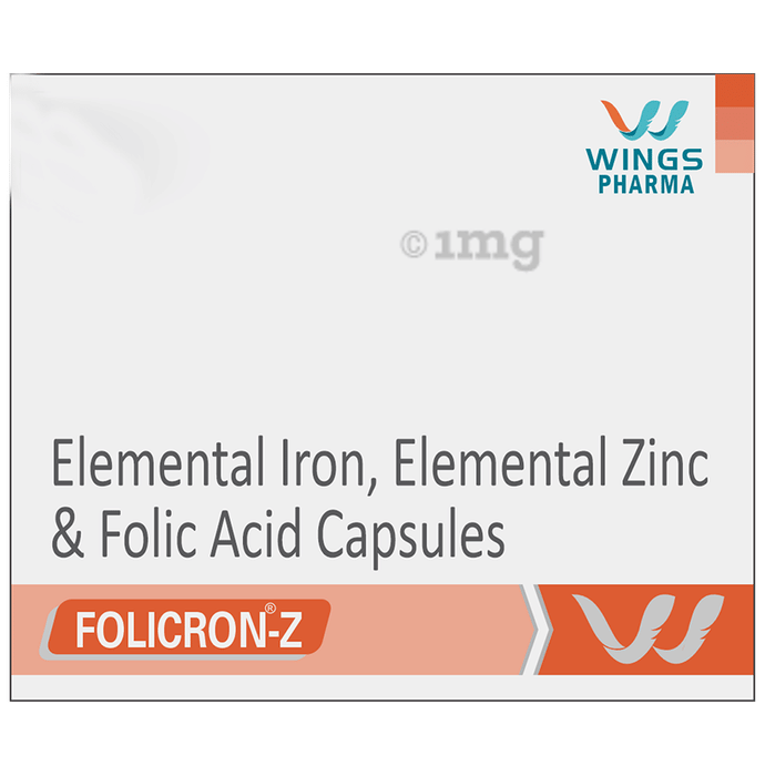 Folicron-Z is a nutraceutical formulation containing carbonyl iron, zinc sulphate monohydrate, and folic acid. Carbonyl iron helps maintain healthy iron levels and supports oxygen transport. Zinc supports immune health, cell growth, and repair. Folic acid contributes to the normal formation of red blood cells and supports adequate folate intake. Together, these nutrients can provide prophylactic support for overall nutritional balance and well-being.