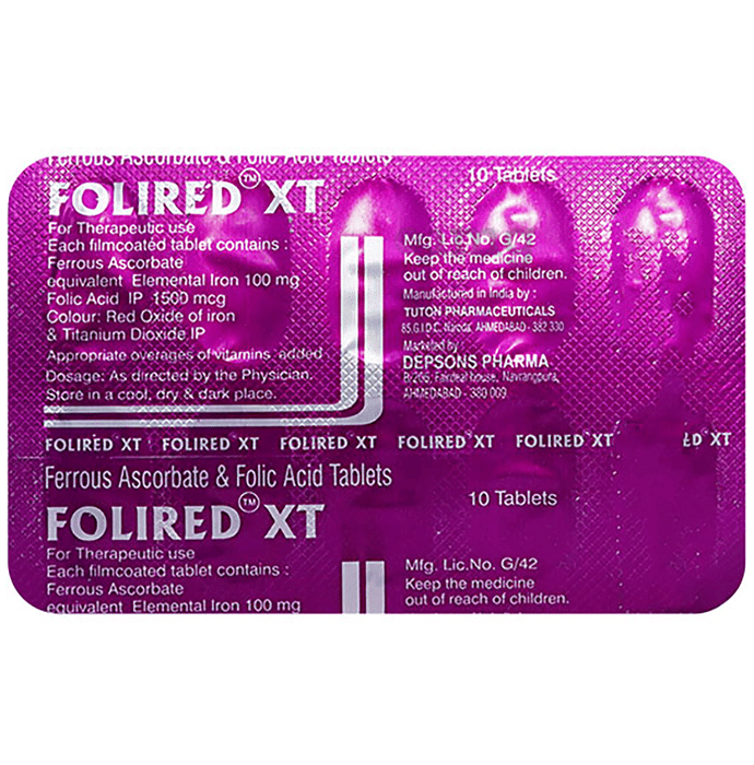 Folired XT tablet contains Elemental Iron( in the form of carbonyl iron) and Folic acid. Elemental Iron is source of Iron, Iron transports oxygen throughout the body and maintains red blood cells, thus making an individual feel energetic and preventing anemia. Sodium feredetate claimed to have less gastrointestinal irritation, unlike other iron. Folic acid is essential to numerous bodily functions ranging from nucleotide biosynthesis to the remethylation of homocysteine. It is especially important during periods of rapid cell division and growth. Both children and adults require folic acid to produce healthy red blood cells and prevent anemia.