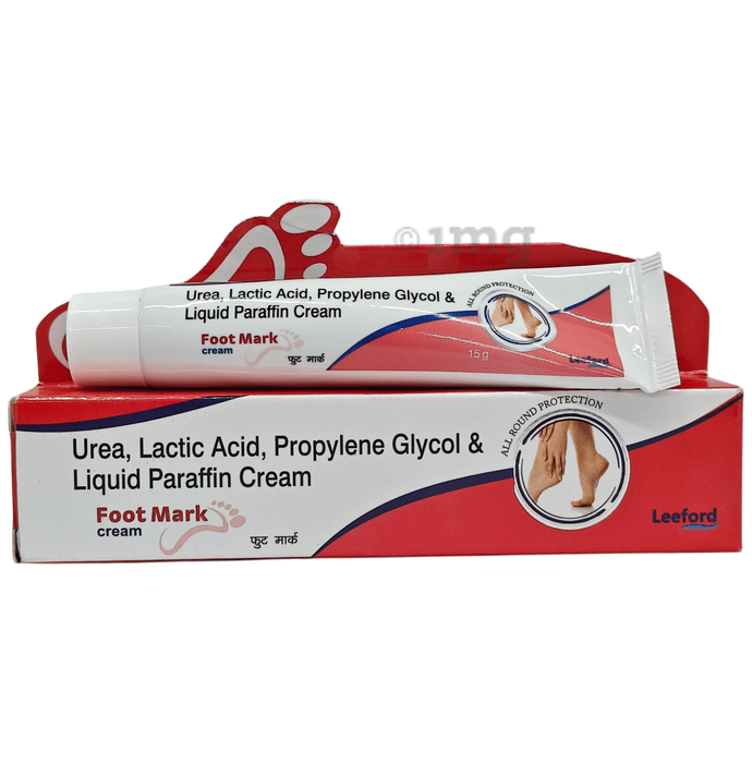 Footmark Cream contains Urea that moisturises, removes dead skin and renews the old skin. Lactic acid, a keratolytic, prevents dry, rough, scaly and itchy skin. Propylene Glycol, provides hydration and smoothness to the skin and liquid paraffin, an occlusive film forming agent moisturises the skin. Footmark cream is used to soften the stubborn dry skin of feet that is absorbed rapidly and gives instant softness.