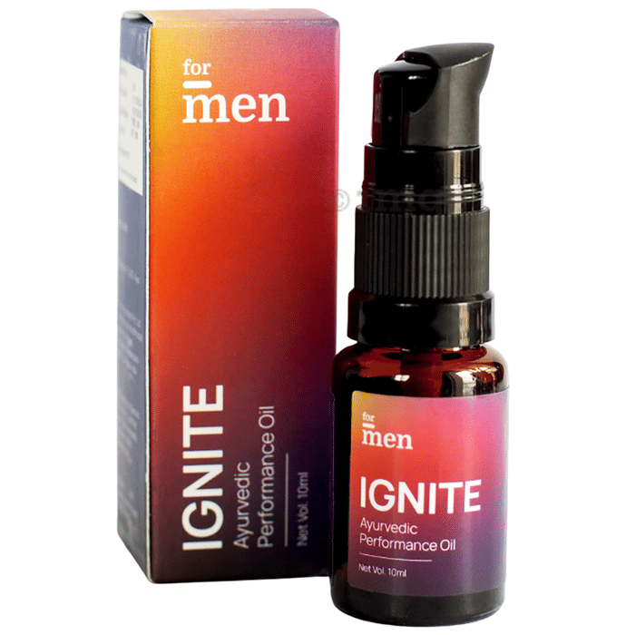 For Men Ignite Ayurvedic Performance Oil is a topical formulation using aqueous extracts and oils from herbs like Aloe Vera, Guggulu, Dalchini, Ela, and Lavender, processed in a perfumed base. The formulation offers a non-greasy, fast-absorbing texture suitable for daily topical application, providing a sense of tactile comfort and aromatic experience.