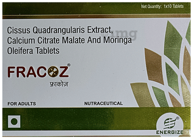 Fracheal Tablet contains Cissus quadrangularis, Vitex negundo, Boswellia serrata, and Withania somnifera as main active ingredients.
