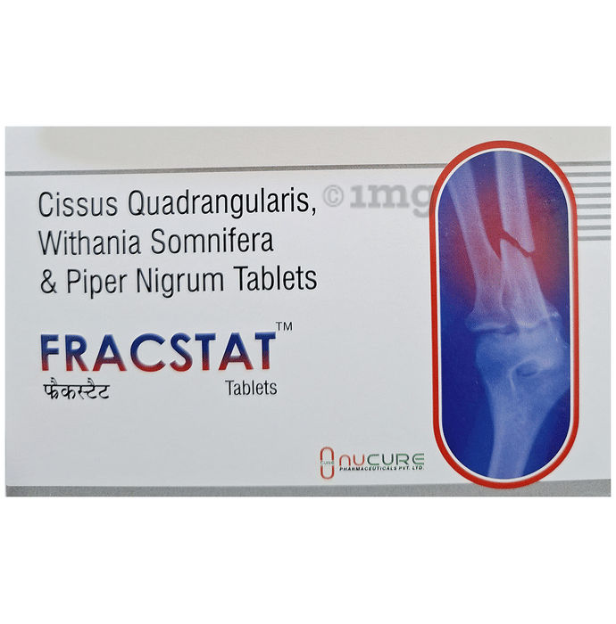 Fracstat Tablet is a nutraceutical supplement formulated with cissus quadrangularis, withania somnifera, and piper nigrum. This combination of botanicals may help contribute to bone and joint wellness, physiological balance, and overall daily health support when taken as part of a balanced lifestyle.