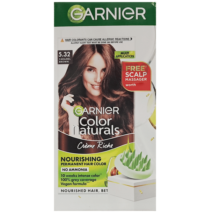 Garnier Color Naturals Creme Rich Hair Color Caramel Brown with Scalp Massager Free