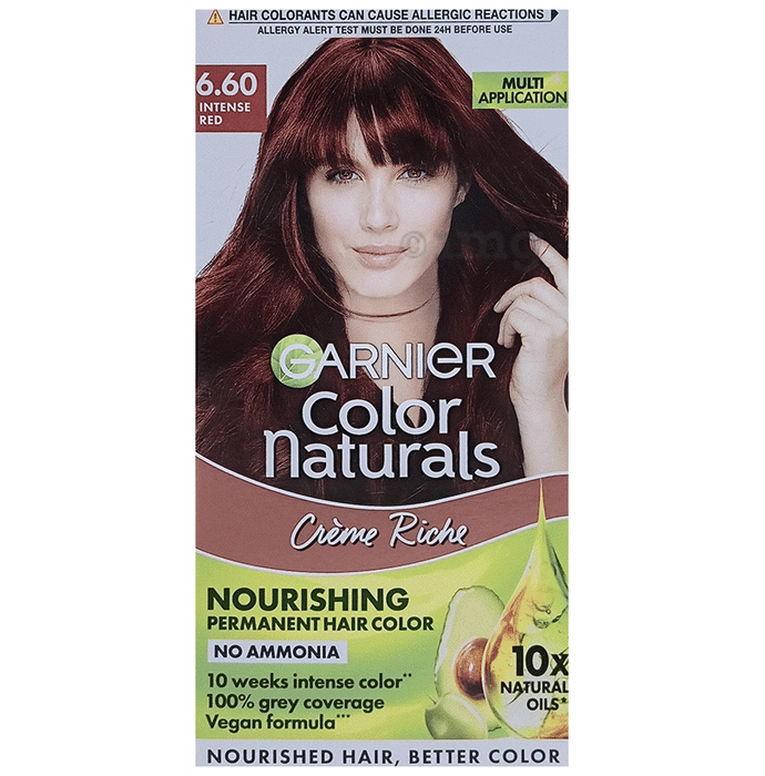 Garnier Color Naturals Creme Rich Hair Color Intense Red is a nourishing, ammonia-free hair colour enriched with 10X natural oils for deep conditioning and vibrant colour. This long-lasting formula may offer grey coverage and help keep the hair shiny and smooth for up to 10 weeks. Suitable for both men and women, it’s available in multiple shades to suit every need.