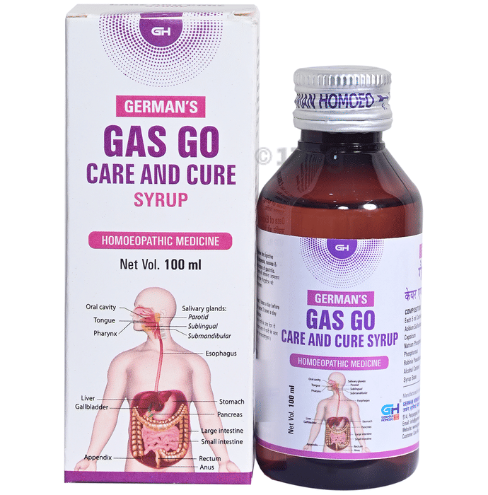 Germans Gas Go Care and Cure Syrup is a clinically tested remedy to regularize the digestive system. It relieves hyperacidity, dyspepsia, nausea and vomiting. The syrup also helps with flatulence and cramps.