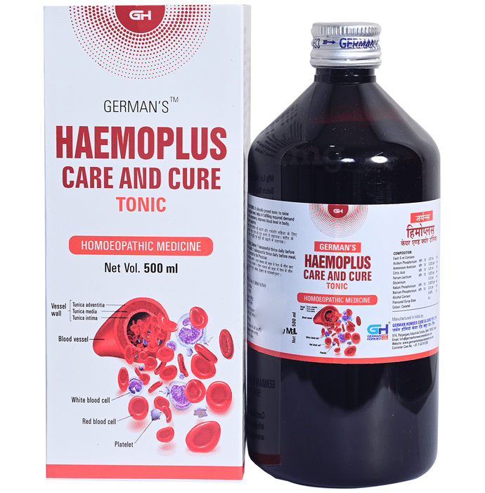 German's Haemoplus Care and Cure Tonic is a clinically proved formulation to raise haemoglobin levels. It also helps in fulfilling the required amount of iron in pregnancy. The tonic can be used to improve blood levels and appetite.