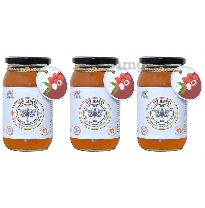Gir Honey Raw NMR Tested Pure Honey (500gm Each) Lychee is sourced from the nectar of fragrant Lychee blossoms in the pristine Gir forests. This raw, unfiltered honey can preserve its natural enzymes, antioxidants, and nutrients to help offer a delicately sweet, floral flavour with a rich and aromatic profile. This honey can be a suitable choice for those looking for wholesome honey with a rich taste and potential health benefits. This honey can be a flavourful addition to a balanced diet.