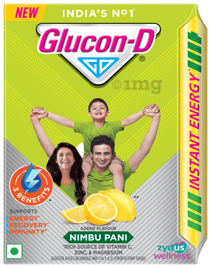 Glucon-D is a nutritional drink with glucose, calcium, sucrose, and vitamin C that helps revitalise the body. It helps restore glucose levels and makes for a suitable drink during summer or workouts. It is easily absorbed by the body and helps fight tiredness.