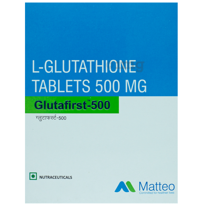 Glutafirst 500 Tablet is a dietary supplement containing L-Glutathione. L-Glutathione is a naturally occurring tripeptide composed of glutamine, cysteine, and glycine, which can help support cellular health and maintain antioxidant balance. This tablet may assist in tissue building and repair, support the synthesis of essential proteins and chemicals, and help maintain immune system function. It is formulated for easy oral administration, providing a convenient option to include L-Glutathione as part of a balanced diet and daily wellness routine.