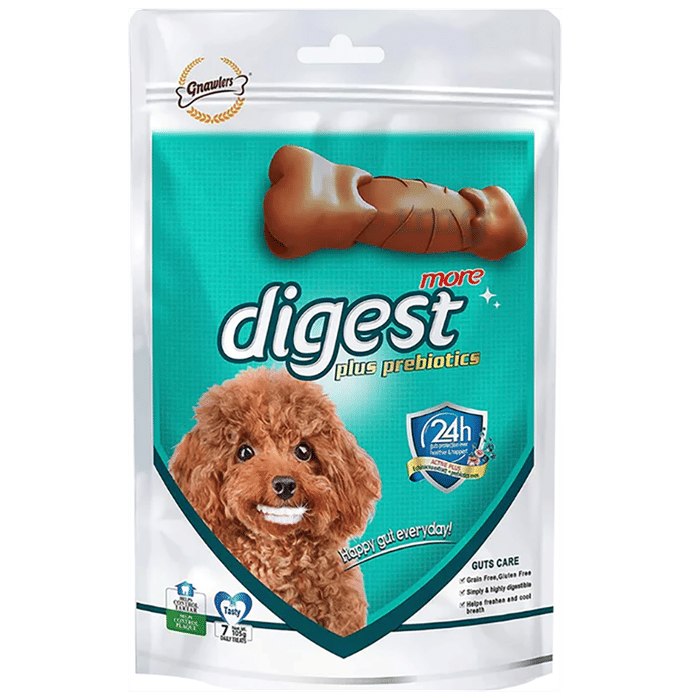 Gnawlers More Digest Plus Prebiotic Dental Chew Bone for Dogs is a nutritious and tasty treat that promotes dental health and digestion in dogs. It is made with high-quality ingredients and fortified with prebiotics, which helps improve digestive health.