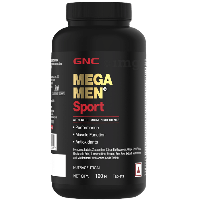 GNC Mega Men Sport Tablet provides a blend of essential nutrients to support men’s overall health, performance, and muscle function. It contains lycopene, lutein, zeaxanthin, citrus bioflavonoids, grape seed extract, hyaluronic acid, turmeric root extract, beetroot extract, and amino acids which work together to help boost muscle performance. The complementary effect of each ingredient in this formula helps maintain muscle strength, boosts exercise performance, manages blood sugar levels and reduces muscle fatigue.