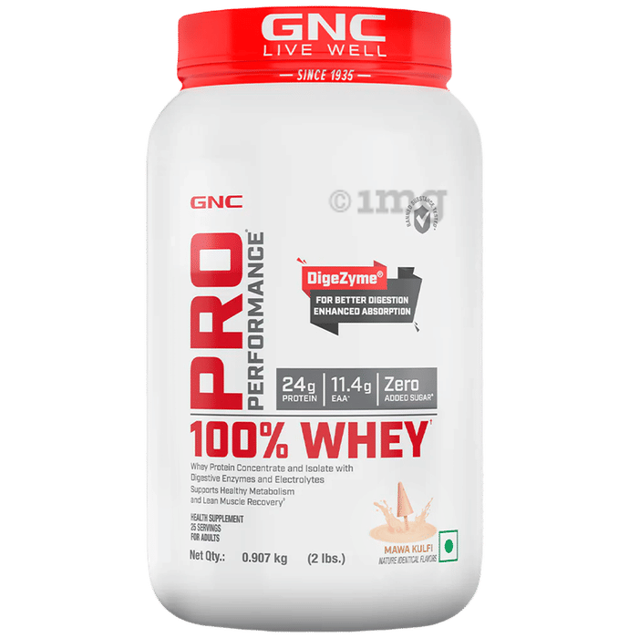 Information about GNC Pro Performance 100% Whey Protein | With Digestive Enzymes & Electrolytes | For Metabolism & Lean Muscles Recovery | Flavour Powder Mawa Kulfi