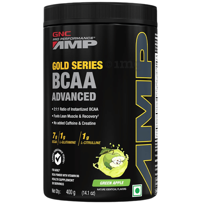 GNC Pro Performance AMP Gold Series BCAA Advanced | For Lean Muscles & Recovery | Flavour Green Apple