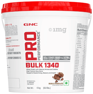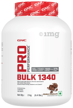 Get the right body gains faster with the GNC Pro Performance Bulk 1340. This unique formula is made for targeted weight gain, which contains 1340 calories, the highest compared to other weight gainers. Moreover, it contains protein and carbs in the perfect ratio of 1:7, an ideal composition to ensure your body bulks up correctly without flaps. Each serving is packed with 279g of carbohydrates to replenish the glycogen stores in your body. This replenishment encourages your body to acquire energy from the newer carbohydrates while leaving the existing calorie stores untouched, helping prevent weight loss. In addition, GNC’s Bulk 1340 contains 50g Protein with 9.5g BCAAs and 7gm glutamine, a complete amino fuel to increase muscle mass and healthy body gains. This advanced protein profile boosts immunity and minimises breakdown during and after a workout for impressive results. GNC’s Bulk 1340 also includes 1500mg of creatine as a part of its nutrient-rich formula to keep your body pumped up with high energy during heavy training. It is also enriched with 24 essential vitamins and minerals to fulfil the increasing micro-nutritional demands of your rapidly bulking body. For smooth digestion, GNC’s Bulk 1340 is infused with 3g of dietary fibre per serving to make the formula easy on the stomach without causing bloating, heaviness, or other stomach-upset symptoms. GNC’s Bulk 1340 wins the game in taste with its super-amazing flavours. Also, it contains zero added sugar for healthier consumption.