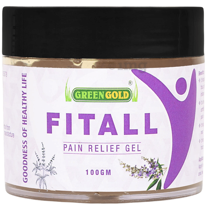 Green Gold Fitall Pain Relief Gel is a topical herbal formulation designed for external application. Enriched with extracts like nirgundi, punarnava, and aloe vera, it may help provide a soothing effect when applied to areas of stiffness or strain. The lightweight gel texture allows quick absorption, making it suitable for application on joints and muscles. Regular use may help ease discomfort associated with stress, sprains, and general body tension, offering a cooling and refreshing sensation.