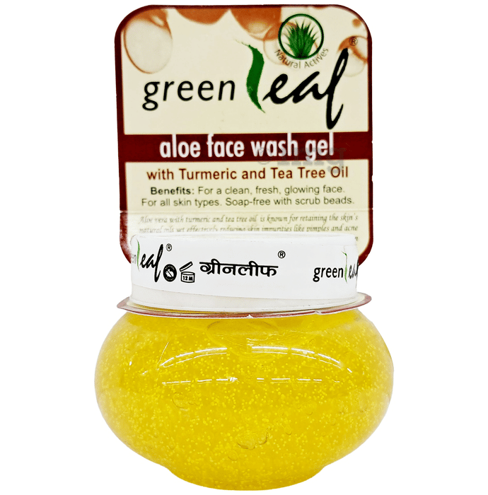 - Greenleaf aloe face wash gel has iso-diametric scrub beads that gently exfoliate the dead skin tissue while maintaining the skin moisture, to give a fresh and radiant look; Aloe vera with turmeric and tea tree oil is known for retaining the skin’s natural oils
