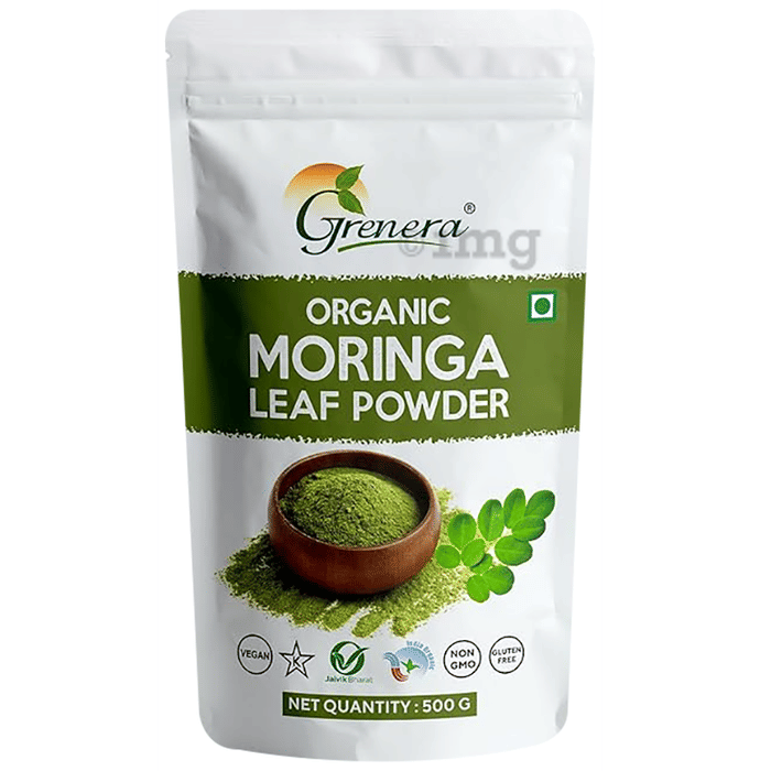 Grenera Organic Moringa Leaf Powder is a herbal formulation composed of moringa oleifera leaves. It can help manage nutritional needs by supporting antioxidant activity, internal cleansing, and daily nourishment. This herbal product can also help manage inflammation and pain. It can be helpful for various stomach complaints like constipation, gastritis etc