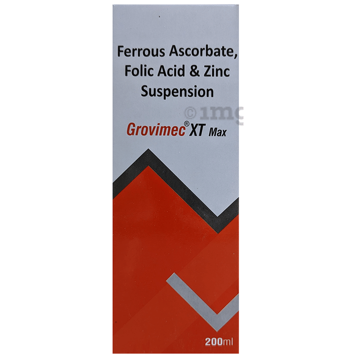 Grovimec XT Max Oral Suspension helps to replenish the iron stores in your body and corrects iron deficiency that causes anaemia. It plays a vital role in the formation of red blood cells, which carry oxygen throughout the body. It is also essential in pregnancy due to its role in the development of the unborn baby's brain and spinal cord. Zinc is a micromineral that provides nutrition.