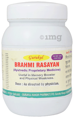 Gurukul Brahmi Rasayan is an ayurvedic formula that improves memory, mental strength, cognition, immunity, general well-being etc. It is regarded as an excellent cerebral tonic. It is a paste of herbs and fruits that provide essential nutrients required to increase brain power. The Rasayan can also improve physical strength and health upon regular consumption as it provides the essential energy that people require to lead a healthy life.