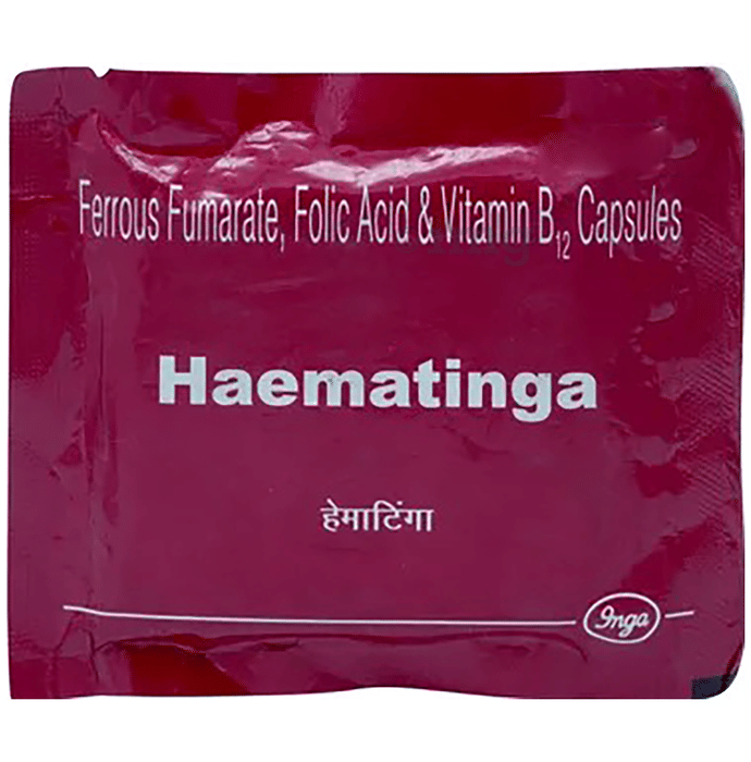 Haematinga capsule is an iron preparation which contains Ferrous fumarate , Folic acid and Vitamin B12.