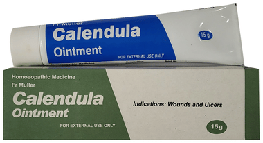 Calendula + Ointment is used for open wounds, cut, external ulcer, boils & carbuncles, bleeding form skin & itching.