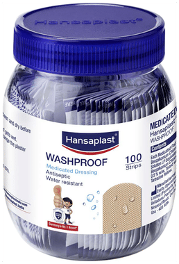 Hansaplast Washproof Medicated Dressing is a water-resistant yet breathable plaster designed to keep wounds dry and safeguard against infections. Crafted from flexible, wash-proof material, this antiseptic dressing bandage offers comfort and shields wounds from water and bacteria.