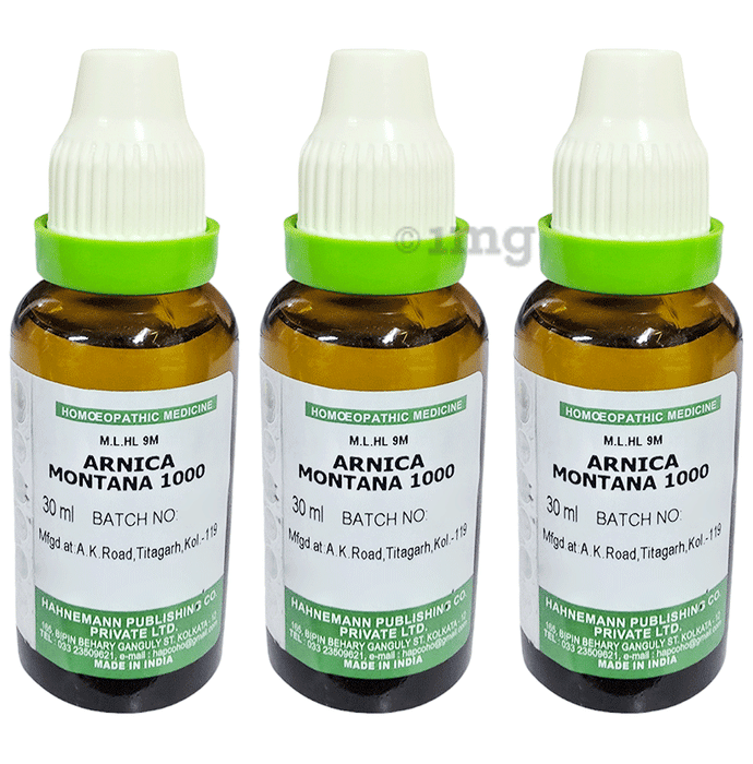 Hapco Arnica Montana (30 ml each) 1000 is a homoeopathic formulation derived from the Arnica plant, which can help address musculoskeletal discomfort. It may help manage pain, swelling, bruising, and inflammation resulting from strain or overexertion. Ideal for those recovering from injuries or undergoing physical exertion, this remedy can assist natural healing and comfort.