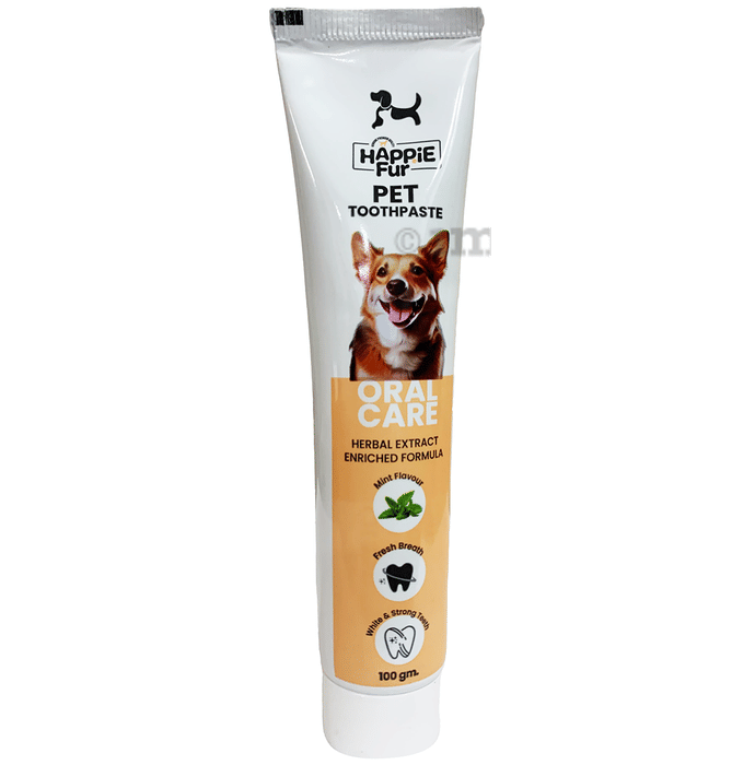 Happiefur Pet Toothpaste is specially formulated for pets with a herbal extract-enriched blend that can help support oral hygiene and freshness. The combination of aloe vera, clove, tulsi, neem, babool, rose, pudina, and nirgundi provides a natural composition that can help maintain clean teeth and fresh breath. With a mint flavour, this toothpaste helps make brushing a more enjoyable experience for pets while supporting strong teeth and healthy gums. It is designed for external use only and not intended for human use.