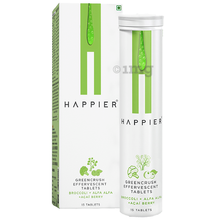 Happier Effervescent Tablet Greencrush is rich in antioxidants and nutritional levels. It can provide essential vitamins and minerals to detox the body. It helps to boost immunity and energy. It is vegan, non-GMO, lab-tested, and sweetened with stevia. These plant-based tablets are dairy, gluten, fillers, and sugar-free.