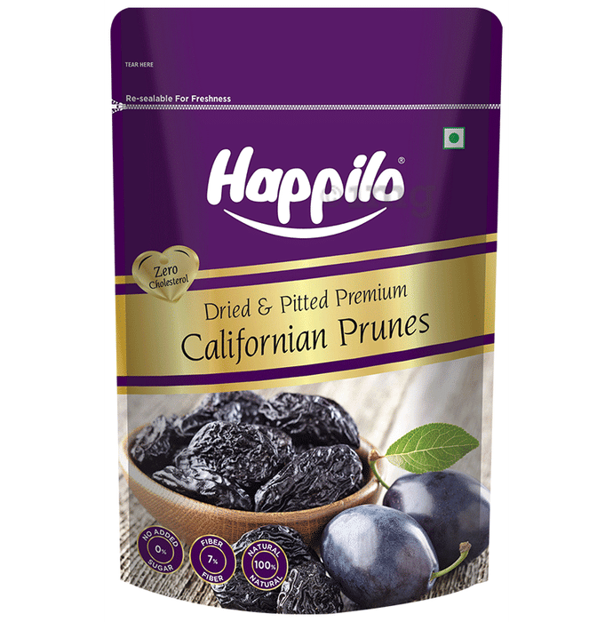 Happilo Premium Californian Pitted Prunes are high in fibre, which promotes bowel regularity. They aid digestion and help to reduce cholesterol levels. Prunes support bladder health and help manage constipation.