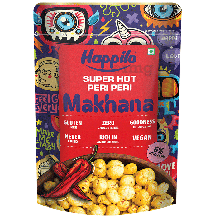 Happilo Super Hot Peri Peri Makhana is a tantalising snack that marries the wholesome goodness of makhana with a delectable blend of fiery peri-peri spices. Enriched with the goodness of nature, these seeds are rich in protein, amino acids and antioxidants. They are low in cholesterol, fat and sodium. Happilo chilli garlic makhana is a great alternative to popcorn.