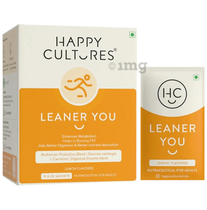 Happy Cultures Leaner you |Fat Loss & Weight Management,Boosts metabolism & Reduces Cravings| Probiotics,L carnitine,Garcinia Cambogia Sachet (2gm Each)