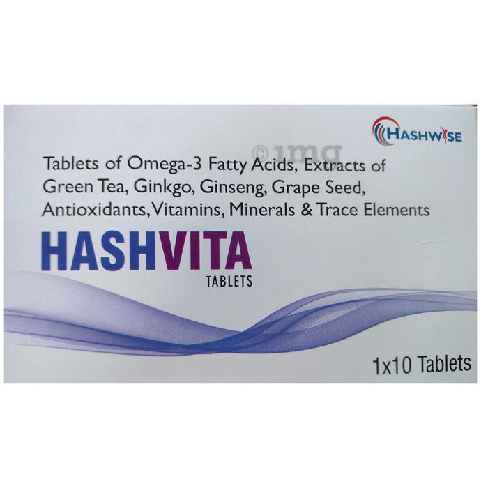 Hashvita Tablet is a nutritional supplement containing a blend of herbal extracts, vitamins, minerals, probiotics, and antioxidants. It may help in maintaining daily wellness, supporting energy and vitality, and managing overall health balance.
