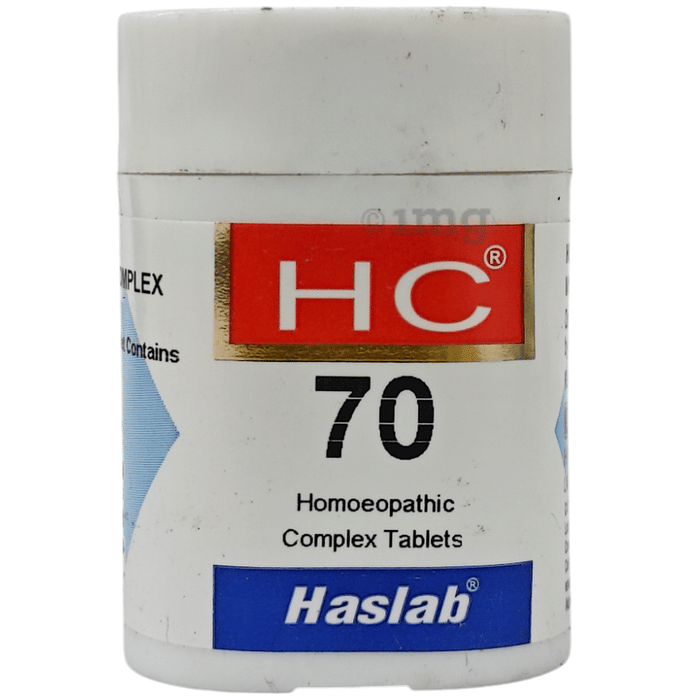 Haslab HC 70 Penicillin Complex Tablet is used for symptoms like raised body temperature, allergies, dry tongue, recurrent boils with pus formation. It also acts as a remedy for burning palms and soles.