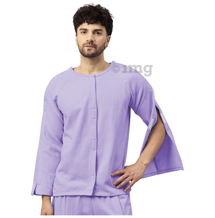 Information about Haxor TSH546 Fleece Unisex Post Surgery Recovery Velcro Open Tearaway Full Sleeve Fleece T-Shirt for Post Op Care Purple Small