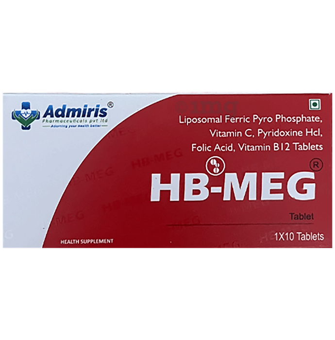 HB-Meg Tablet is a dietary supplement formulated with Liposomal Ferric Pyrophosphate, Vitamin C, Pyridoxine HCl, Folic Acid, and Vitamin B12. It is designed to support nutritional intake in individuals who require iron, especially in specific life stages or dietary conditions. The liposomal form of iron may support better nutrient absorption and tolerance. This formulation can be taken with or without food and is gentle on the digestive system, offering a convenient option for consistent use.