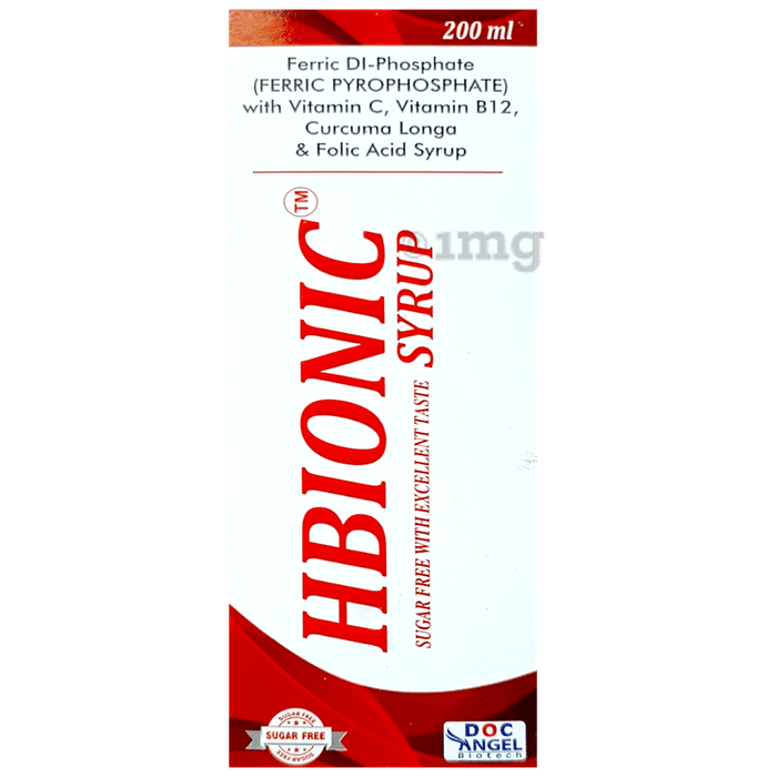Hbionic Syrup Sugar-Free is a carefully formulated dietary supplement designed to help manage nutritional requirements for iron and essential vitamins. This syrup combines Ferric DL-phosphate (Ferric Pyrophosphate), a bioavailable form of iron, with Vitamin C, Vitamin B12, Folic Acid, and Curcuma Longa. These nutrients can help in supporting overall health by contributing to the maintenance of normal energy metabolism, red blood cell formation, and immune system function. This sugar-free syrup is intended to provide a convenient and palatable option for individuals needing additional iron and vitamin support, without adding extra sugar to their diet. The inclusion of Vitamin C can assist in supporting iron absorption, while Folic Acid and Vitamin B12 may help maintain healthy blood cells. Curcuma Longa is included to help support general wellness.