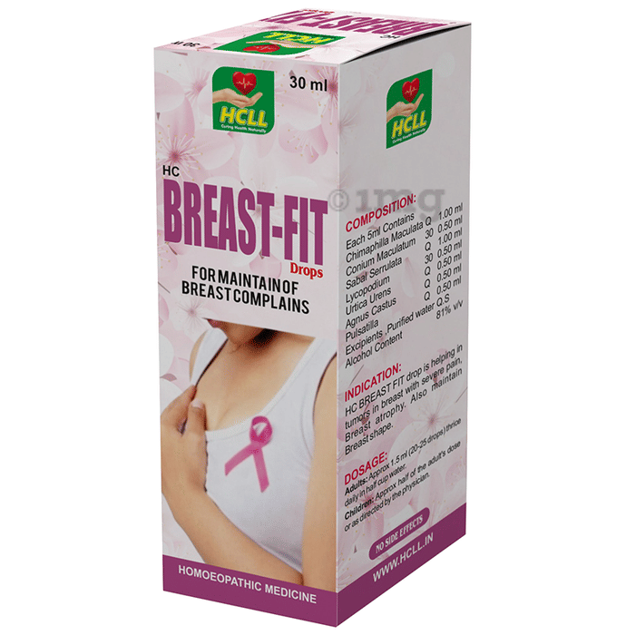 HCLL HC Breast Fit Drop is a homoeopathic supplement formulated to support breast health and well-being. It contains potent ingredients such as chimaphila maculata, conium maculatum, sabal ser, lycopodium, etc, which helps to address various concerns related to breast health. Each component helps to promote hormonal balance, improve circulation, and support the overall health of breast tissue.