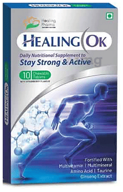 Healing Pharma Healing Ok Tablet is a multivitamin tablet which supports health and well-being. It helps in producing missing nutrients in everyday diet to support an active lifestyle.