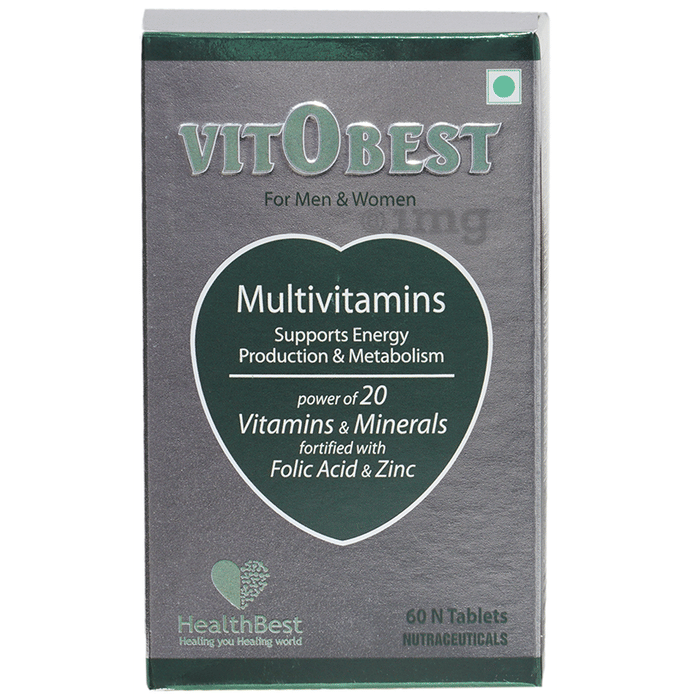 HealthBest VitOBest Tablet is formulated with the power of 20 vitamins and minerals fortified with folic acid and zinc. Vitamin A (palmitate) is beneficial to the body's vision, skin, bones, and other tissues. Vitamin A is a powerful antioxidant that protects cells from harm.